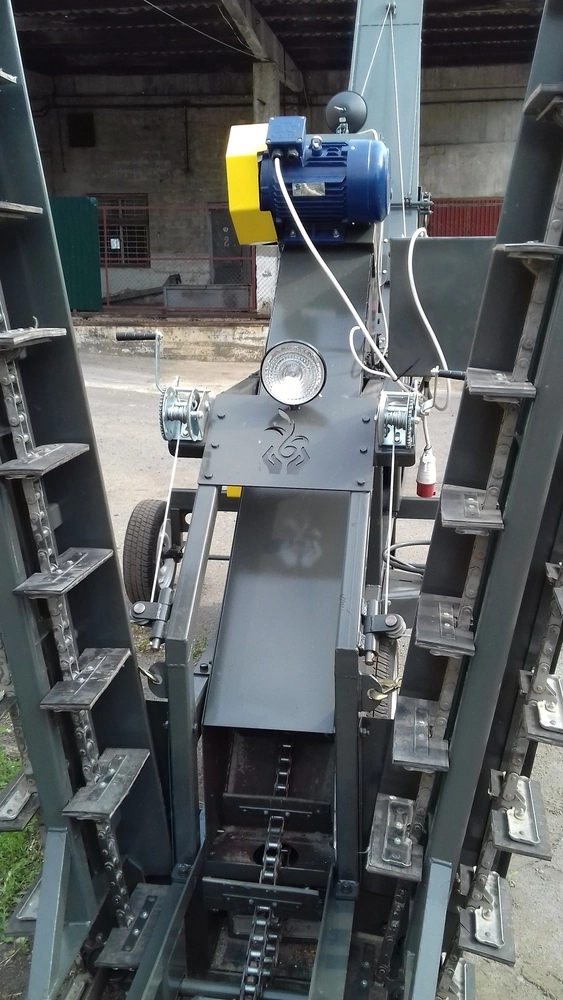 Мощный зернометатель Булат -120 является новейшей и самой мощной моделью зернометателя, в которой нашли свое воплощение передовые защищенные патентом научные и технические достижения. Зернометатель предназначен для погрузки зернового материала в зерновозы, загрузки складов, формирования буртов. Конструкция зернометателя позволяет использовать его для работы в складах с низкими воротами (до 3 м) без снятия трубы триммера. Высота самой трубы легко регулируется при помощи лебедки. Уменьшена степень дробления зерна за счет расположения лопастей катушки под углом. Сами лопасти оснащены резиновыми накладками. Использование корпусных подшипников значительно облегчает обслуживание и, в случае надобности, замену самих подшипников. Конструкция барабанов устраняет проблемы с налипанием мусора на внутренней части ленты триммера, что увеличивает срок службы ленты, улучшает сцепление барабанов с лентой. Механизм регулировки положения козырька трубы триммера позволяет легко и без усилий управлять потоком зернового материала при работе зернометателя. Прочная рама позволяет легко буксировать зернометатель по территории. Совокупность дистанционного пульта управления, освещения и расположение всех органов управления дают возможность управлять зернометателем одному оператору в любое время суток. При разработке данного зернометателя учитывались все требования директив евросоюза.
